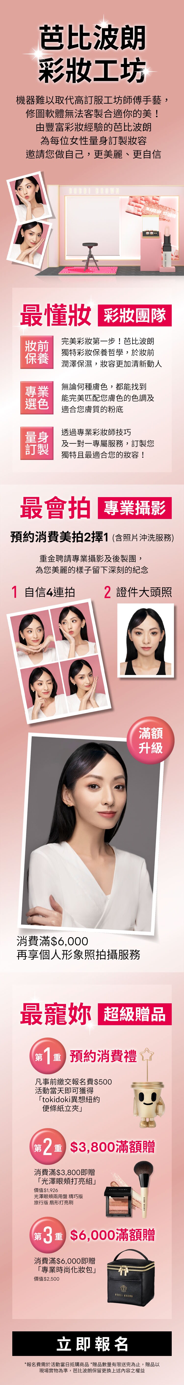 - 本活動僅於芭比波朗官方商城舉辦。Bobbi Brown保留因未經授權、竄改或不符合使用條件的情況而取消訂單的權利,並有權在系統錯誤或其他不可預見情況下修改或取消此優惠