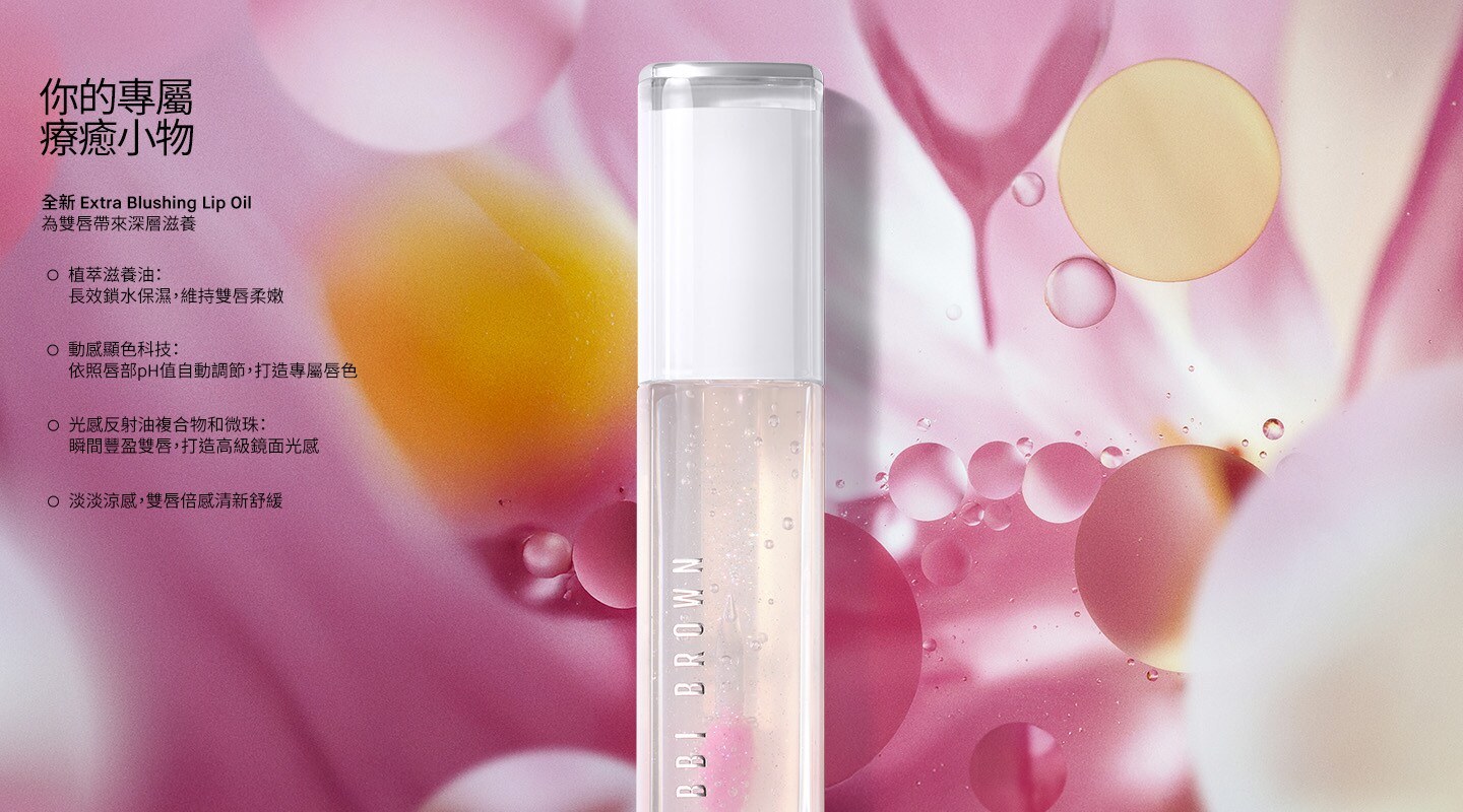 - Bare Pink 清透唇色點綴藍粉微亮珠光,呈現水潤透亮光感