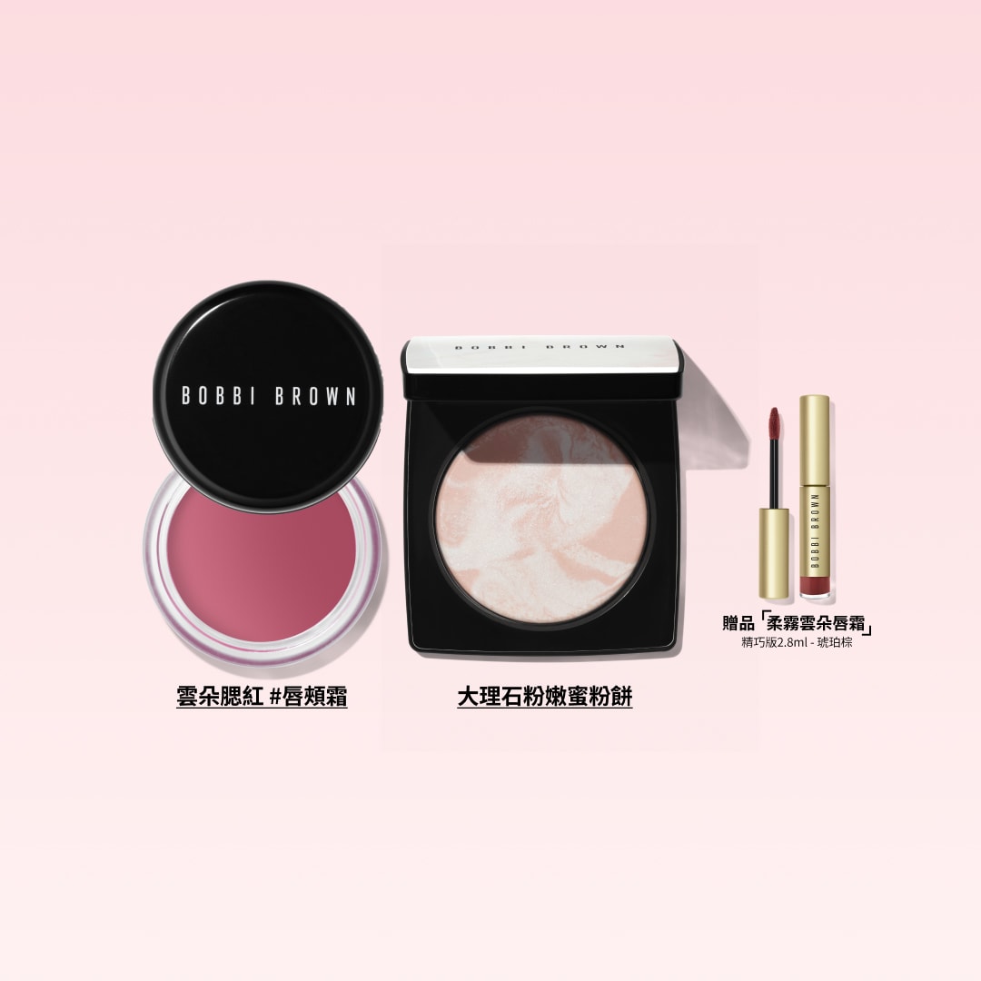 雲朵腮紅 #唇頰霜、大理石粉嫩蜜粉餅 + 贈品: 柔霧雲朵唇霜 精巧版2.8ml - 琥珀棕